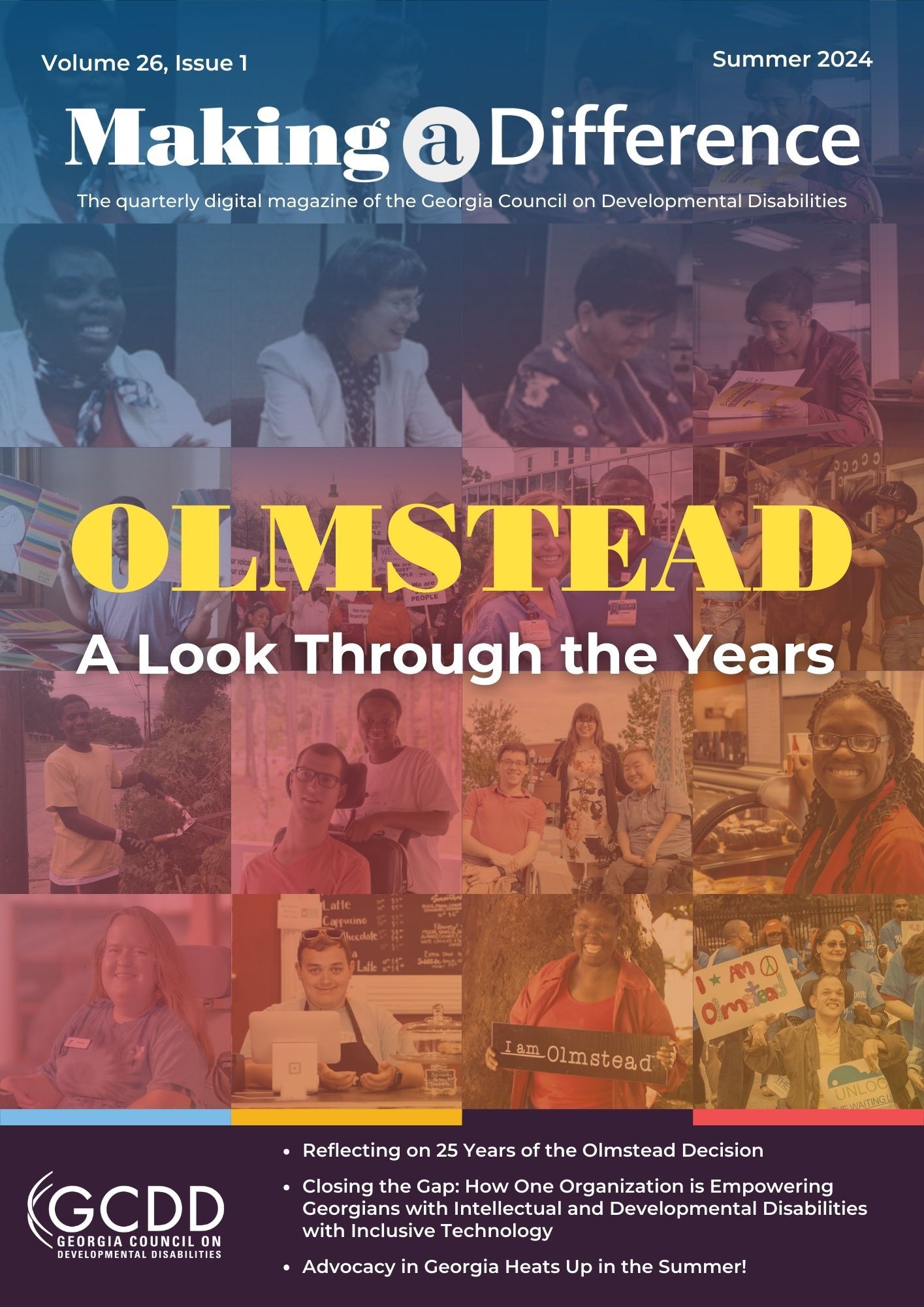 Collage banner with images of different people and it says "Olmestead A Look Through the Years"